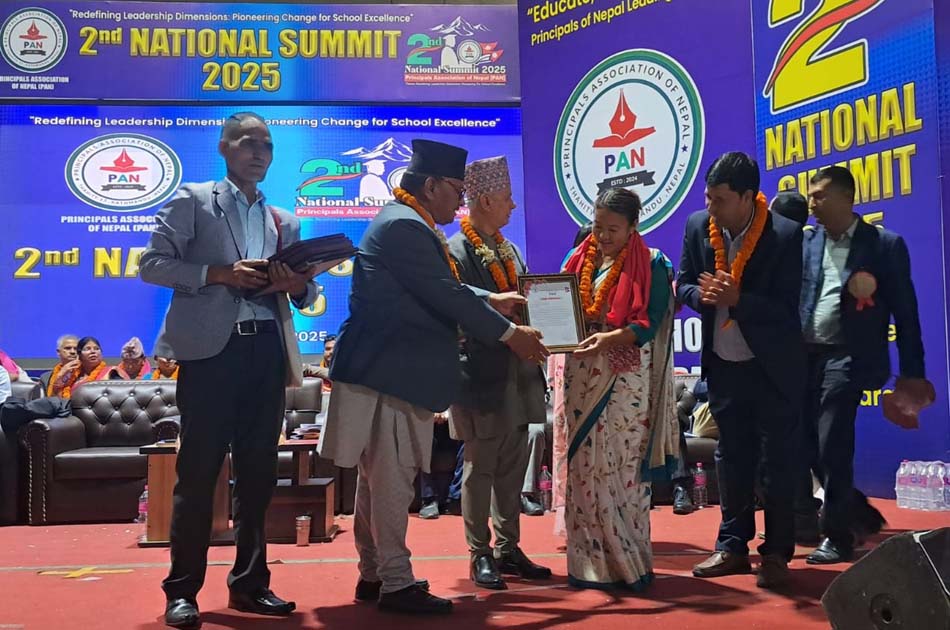 पोखरामा शुक्रबार आयोजित संस्थाको दोस्रो राष्ट्रिय सम्मेलनको अवसरमा हलेसी तुवाचुङ नगरपालिकालाई पुरस्कृत गरिएको आयोजकले जनाएको छ । ‘नेतृत्वका नयाँ परिभाषा ः विद्यालय उत्कृष्टताका लागि परिवर्तनको अगुवाइ’ भन्ने मुल नाराका साथका आयोजित सम्मेलनमा नेपाल सरकारका शिक्षा, विज्ञान तथा प्रविधिमन्त्री रघुजी पन्तले नगर प्रमुख विमला राईलाई दोसल्ला ओढाएर पुरस्कार प्रदान गर्नुभएको हो ।