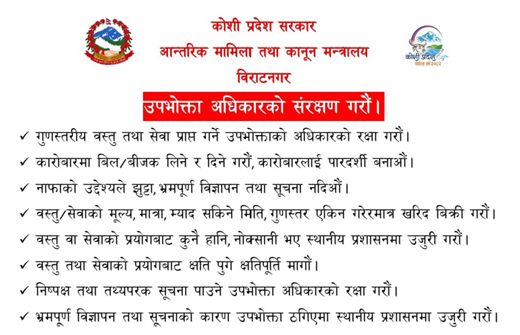 आन्तरिक तथा कानुन मन्त्रालय कोशी प्रदेशद्धारा जनहितमा जारी सूचना